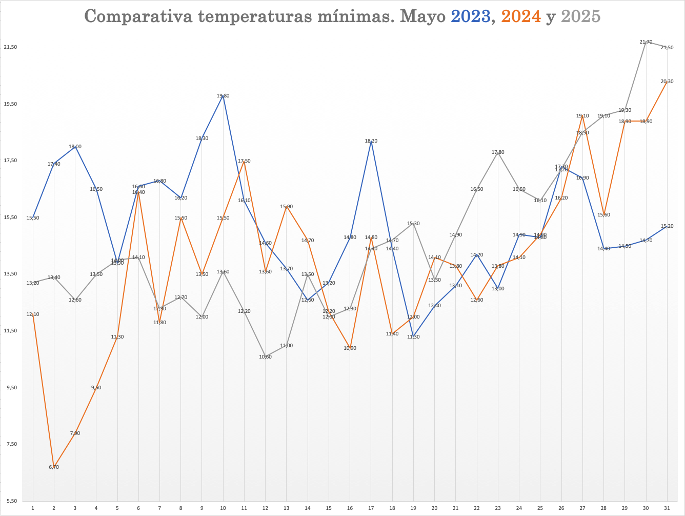 Con más detalle, datos termométricos de 2023, 2024 y 2025 en formato diario.